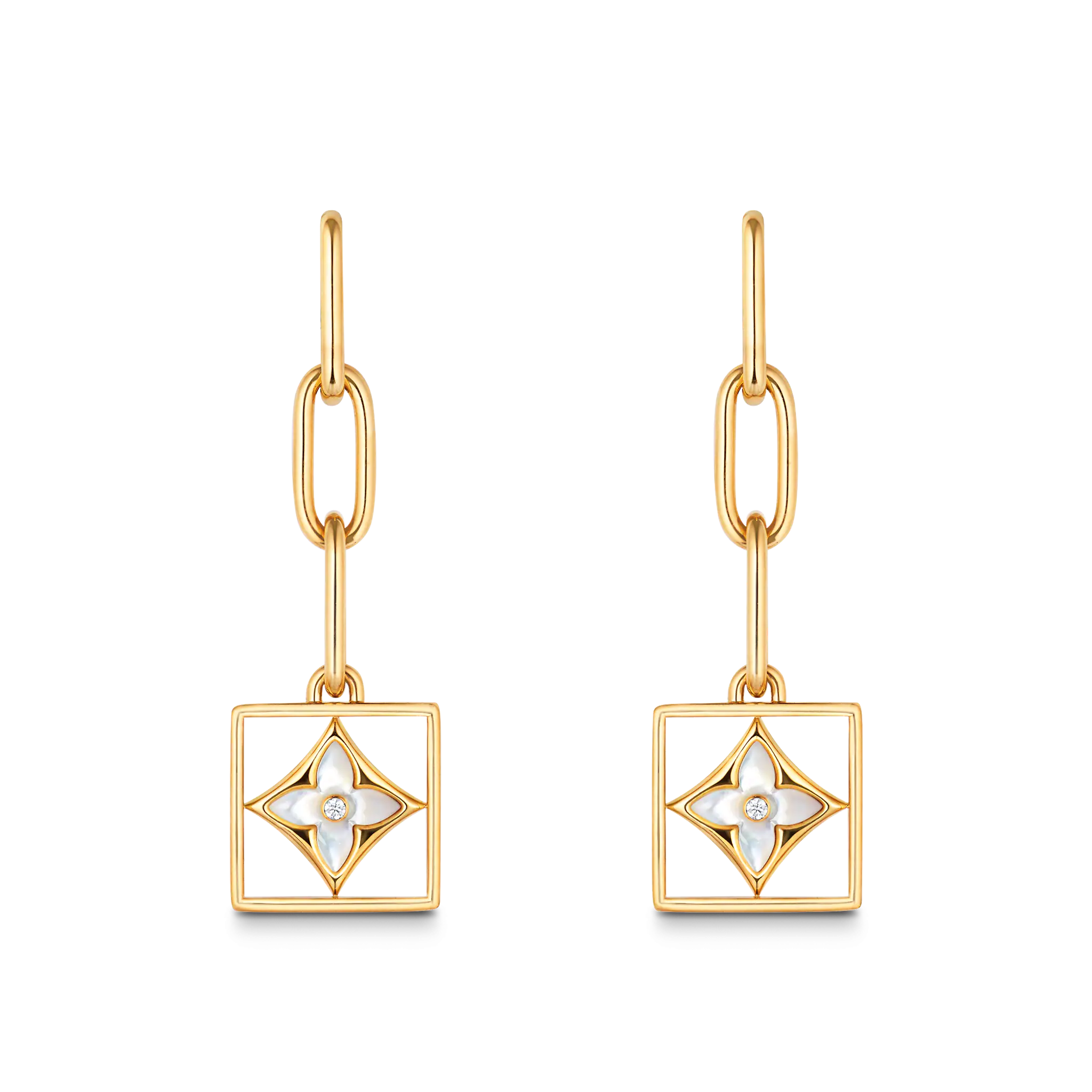 B Blossom Yellow Gold, White Mother-of-Pearl and Diamond Earrings